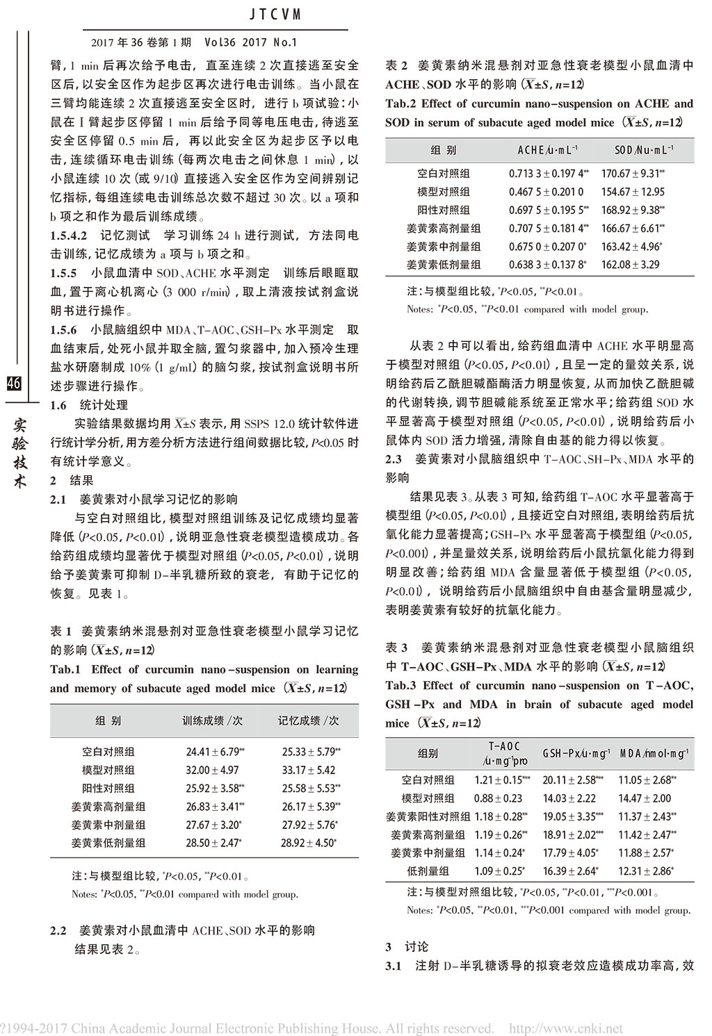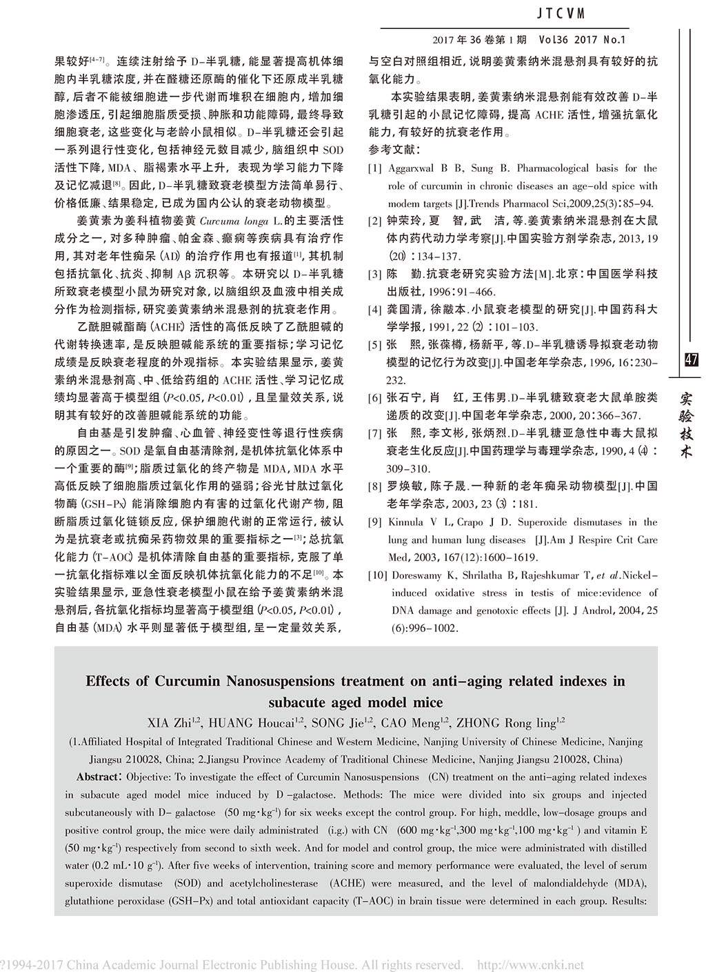 姜黃素納米混懸劑對亞急性衰老模型小鼠抗衰老指標的影響_夏智